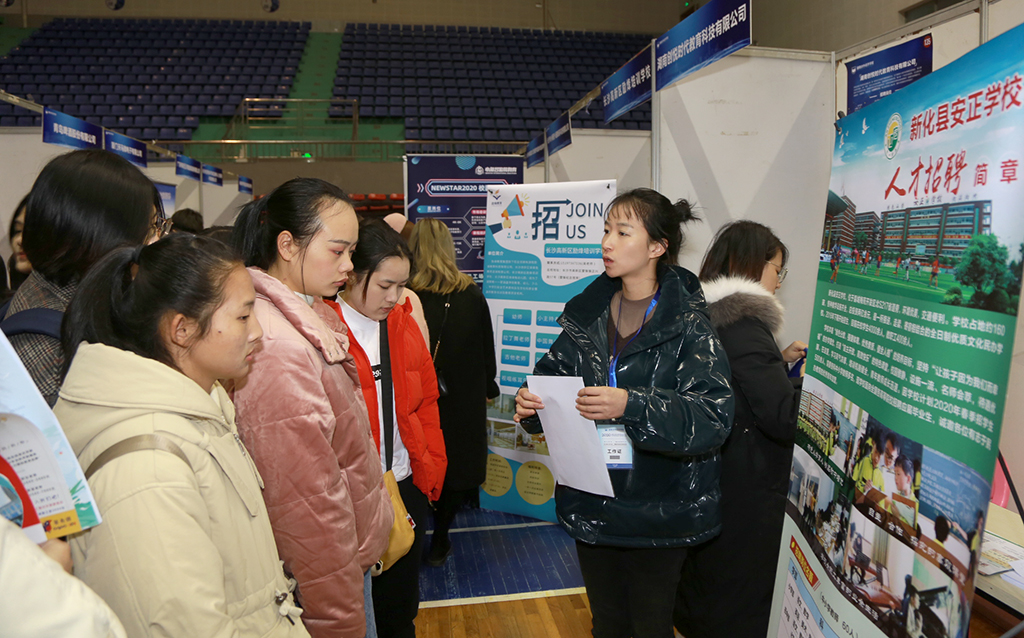 和民办教育有关的岗位也颇受毕业生青睐。浏阳市中协高新科技学校此次提供了若干教学和管理岗位,负责招聘人员是beat365官方网站2016届的毕业生,他为学弟学妹带来了“汽车教师”等新兴职位。