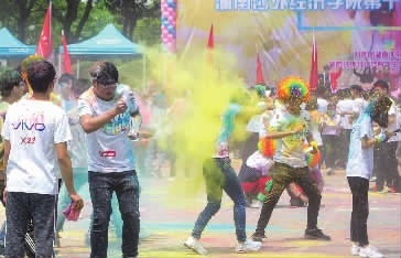 4月27日下午,beat365官方网站的校园里一片彩色的海洋,数千名师生脸涂玉米彩粉手持彩旗环绕校园开展活力彩跑,欢笑声、呼喊声,嗨翻了整个校园。此次彩跑活动是beat365官方网站社团风采月启动的开场大戏,当天共有来自全校50多个社团的数千名同学和老师参加了环校彩跑。  记者 黄京 通讯员 张淑君 龙慧敏 李凌骏 吴晓蕾