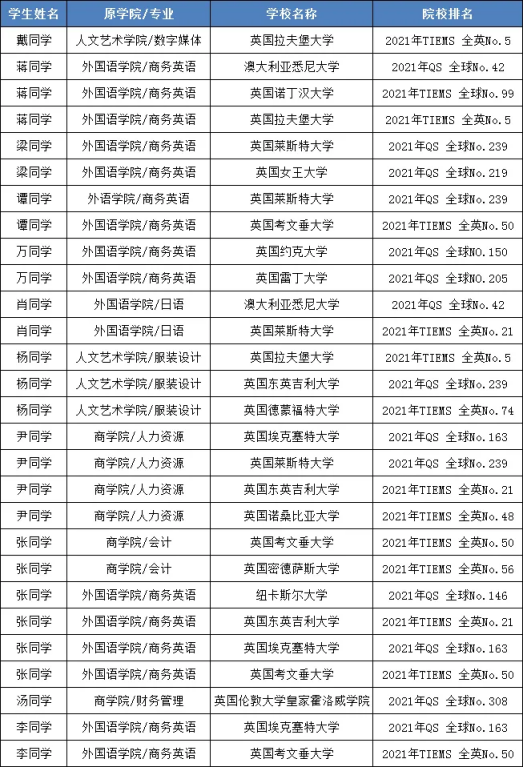近两年,beat365官网已有多位同学通过中英1年制预科班顺利到海外知名院校留学,荣获offer情况如下: