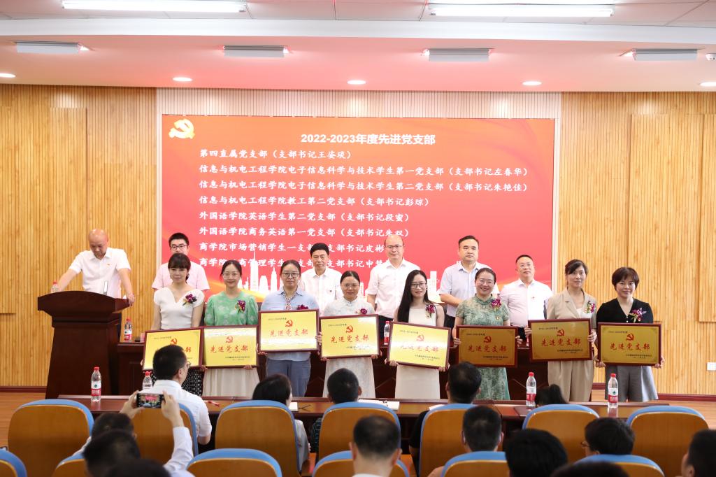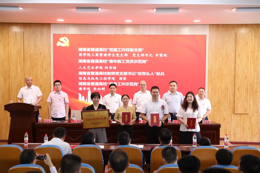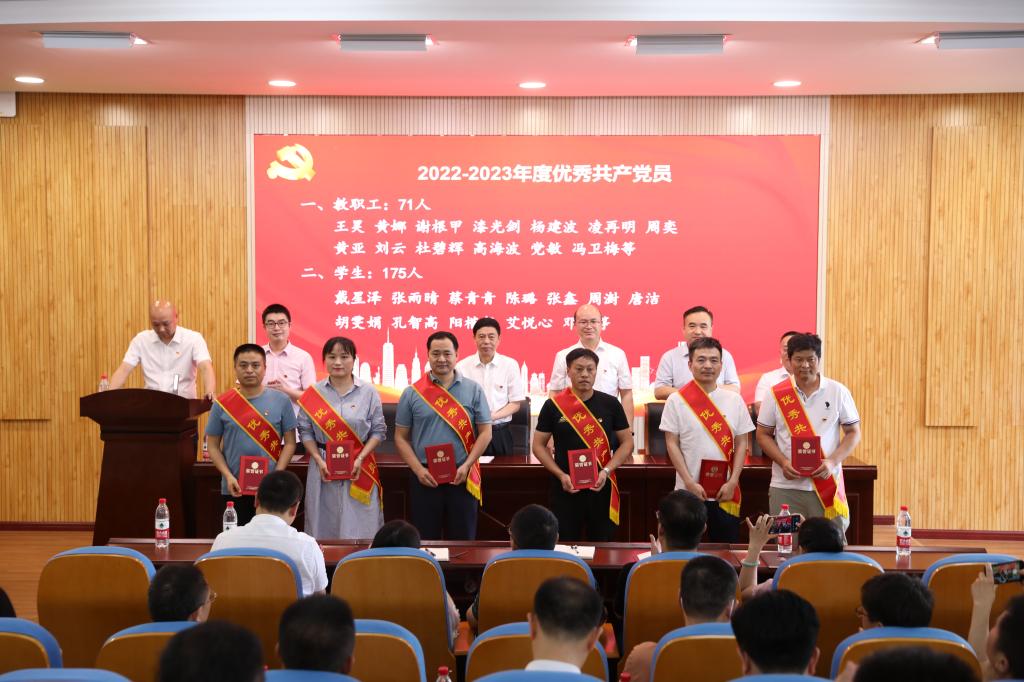 党委副书记、校长王耀中宣读了《关于表彰2022-2023年度先进基层党组织、优秀党务工作者和优秀共产党员的决定》和《关于公布全省高校党组织“对标争先”建设计划第三批项目评选结果的通知》。校领导为获奖集体、个人代表颁发了奖牌和荣誉证书。