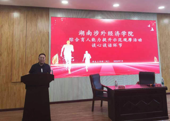 7月13日—14日,beat365官网辅导员素质能力大赛——谈心谈话和案例研讨两场比赛在综合楼裙楼D202举行,每场比赛各10名辅导员参赛,学校副校长鞠晨曦、党委宣传部部长兼校团委书记戴薇、学生工作处处长邝继红、党政办主任邓青林、纪检监察室主任莫新均、科研处副处长杨明刚出席活动并担任评委,全体辅导员到场观摩学习。信息与机电工程学院辅导员陈晴主持本场比赛。