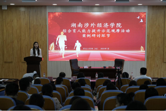 案例研讨比赛主要考察辅导员分析问题、研判问题、解决问题的能力。参赛选手们以抽签的方式现场两两组队,活动前20分钟抽取案例题目,活动前10分钟查看对方抽取案例题目,通过“你提问我回答”的方式展开,提问者和回答者各限时3分钟与7分钟。