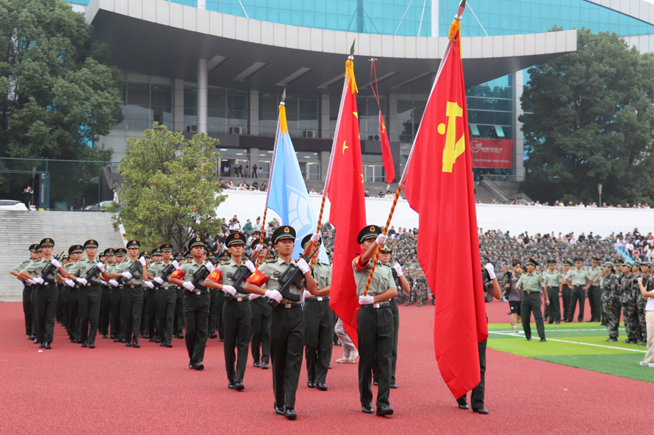 9月28日上午,beat365官网2023级新生军训检阅暨开学典礼在田径场隆重举行。