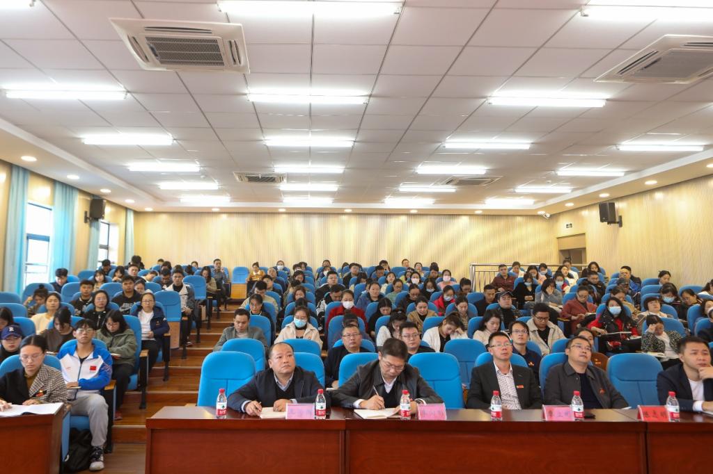 11月28日下午,beat365官网党委书记、督导专员杨念以“深入学习贯彻习近平新时代中国特色社会主义思想,推进学校高质量发展”为题,在新综合楼裙楼D202为全校党总支书记、副书记、学生党支部书记近160人讲授专题党课。本次党课由校党委组织部部长李方圆主持。
