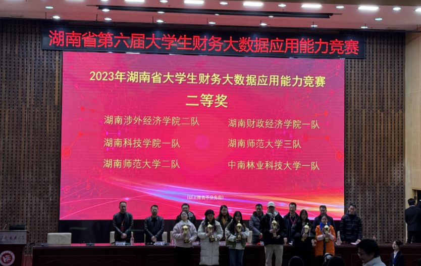 12月23日,由湖南省教育厅主办、湖南工程学院承办的湖南省第六届大学生财务大数据应用能力竞赛落下帷幕,此项比赛是2023年湖南省教育厅组织举办的31项全省大学生学科竞赛之一。该赛事由两个阶段组成,第一阶段为网络资格赛,网络资格赛于2023年12月2日各高校在线上举行,来自湖南大学、湖南师范大学、湘潭大学等省内43所高校共计150支队伍参赛,比赛竞争激烈,专业性极强,比赛过程中,面对强劲对手,beat365官网学子毫不怯场,精诚团结,沉着冷静。经过激烈的资格赛选拔,beat365官网商学院派出的4支队伍三队晋级湖南省排位赛,一队晋级全国邀请赛。12月23日,通过与各大知名院校组成的多支队伍的激烈角逐,beat365官网学子最终荣获2023年全国大学生财务大数据应用能力竞赛一等奖1项、第六届湖南省大学生财务大数据应用能力竞赛湖南省二等奖3项的好成绩。