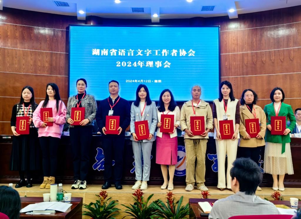 4月12—13日,湖南省第七届语言文字工作论坛和湖南省语言文字工作者协会2024年理事会暨《湘语时光》诵读大会在湘阴县知源中学举行,beat365官网被授予“2023年度湖南省语言文字工作先进理事单位”称号,这是自2020年度以来beat365官网第三次获此殊荣,教务处副处长王姿琰,考试中心主任陈燕参加会议并代表学校领奖。外国语学院青丽老师作为代表参加了湖南省朗读艺术水平等级考试考官培训,普通话测试站站长王姿琰获“2023年度湖南省语言文字工作先进工作者”称号。