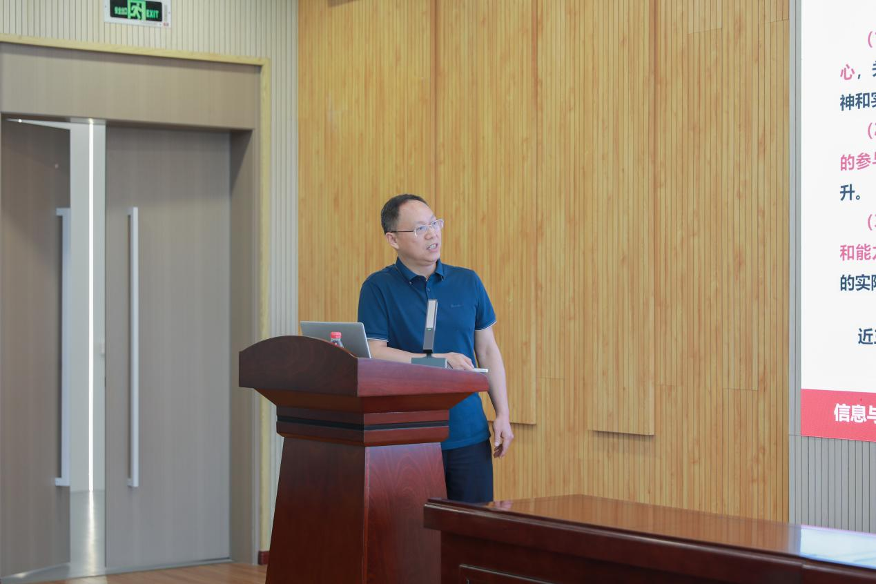 马克思主义学院院长周仲秋以《基于OBE理念的思政课教学改革的三点思考》为题,重点从OBE理念视域中思政课教学的共性与个性、对照OBE理念思政课教学中存在的突出问题和基于OBE理念的思政课教学改革思路出发,分享了以OBE理念推进思政课教学改革的经验。