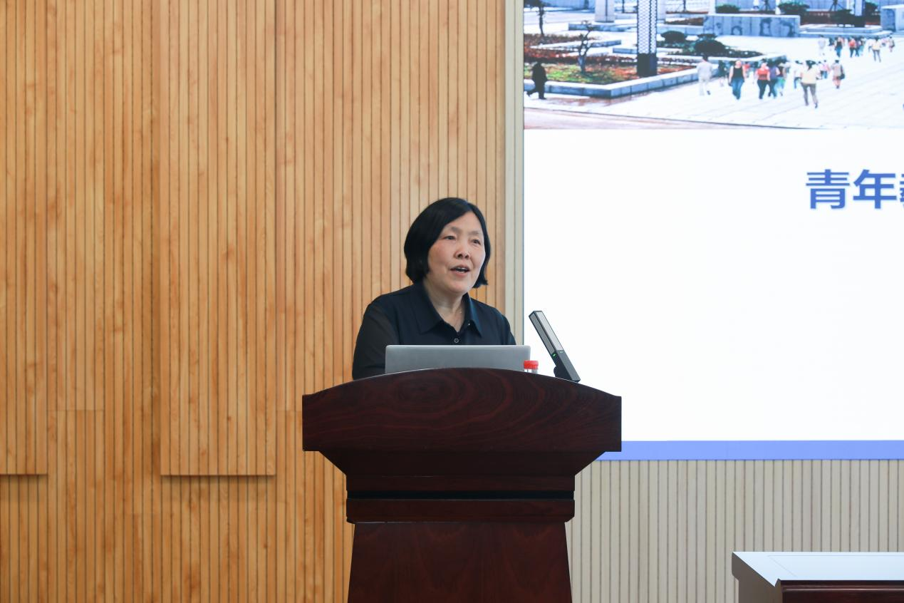 外国语学院院长姚佩芝以《青年教师培养导师制的实施与探索》为题,讲述了青年教师培养基本情况、举措与实施以及进展与成效,以教学获奖、教改项目立项等数据为例,介绍了该院青年教师培养导师制的实施成效。