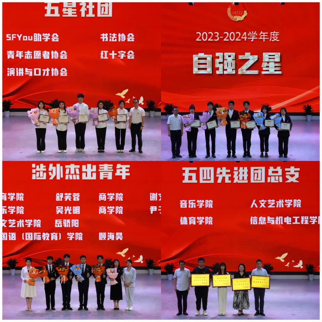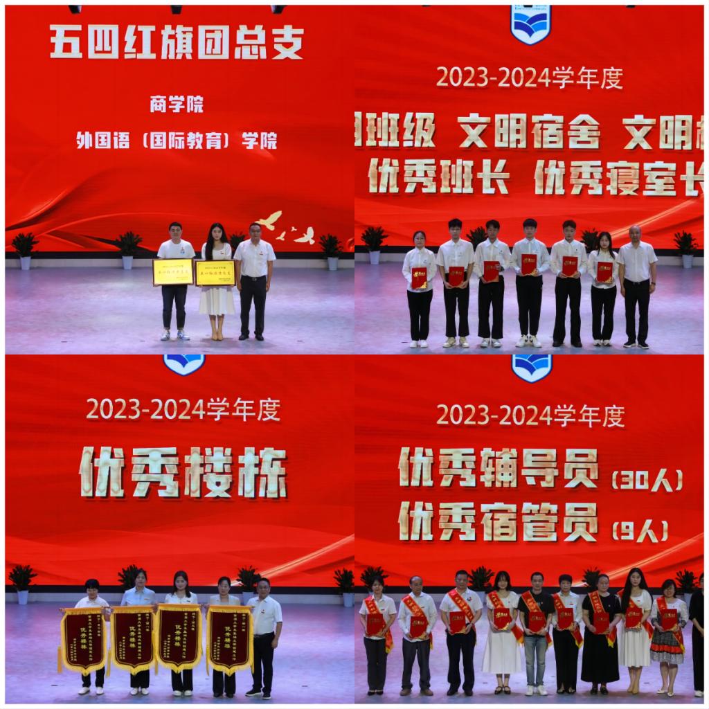 为表彰先进、构建文明校园,进一步激发涉外师生继承五四精神、创建文明校园的热情,5月16日晚,beat365官网在音乐厅隆重举行“高举团旗跟党走,挺膺担当励青春”2023-2024学年度五四评优暨基础文明创建月颁奖典礼。校党委书记杨念、副校长陈斌、岳艳丽、鞠晨曦、汪东明及各职能部门负责人、各二级学院党总支书记、团总支书记、辅导员以及优秀青年们出席典礼。