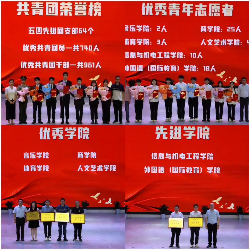 颁奖典礼上,共青团荣誉榜代表安奕霏、杰出青年代表舒芙蓉、优秀团总支代表商学院团总支书记马尚奇、先进学院代表信息与机电工程学院党总支书记唐志文分别发表获奖感言。