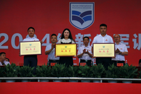 杨念书记授校旗,王耀中校长检阅新生方阵,各方阵整齐划一,踏着整齐响亮的步伐向主席台走来,他们神采奕奕,气势恢宏地喊着口号,向众人展示他们历时14天的训练成果。陈斌副校长宣读本次军训表彰决定,他宣布,五营音乐学院、一营外国语与国际教育学院、三营信息与机电工程学院获军事训练标兵营;二营商学院、四营人文艺术学院、六营体育学院获军事训练优胜营;学生志愿教导大队获特别贡献奖。同时,授予赵晗宇等21名同志新生军训优秀辅导员称号以及李紫淳等700多名同学新生军训标兵称号。校领导分别为先进单位和个人颁奖。