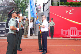 校党委书记杨念授校旗