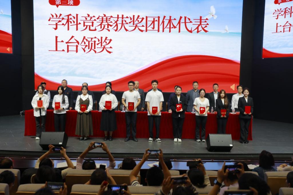 教务处副处长王姿琰宣读了2023-2024学年校奖学金获奖决定名单,学生工作处副处长徐京都宣读了学生竞赛获奖名单。领导们为这些杰出的学生和团队学生代表颁发了荣誉证书,并勉励他们继续努力,在以后的学习生活中不断超越自我。