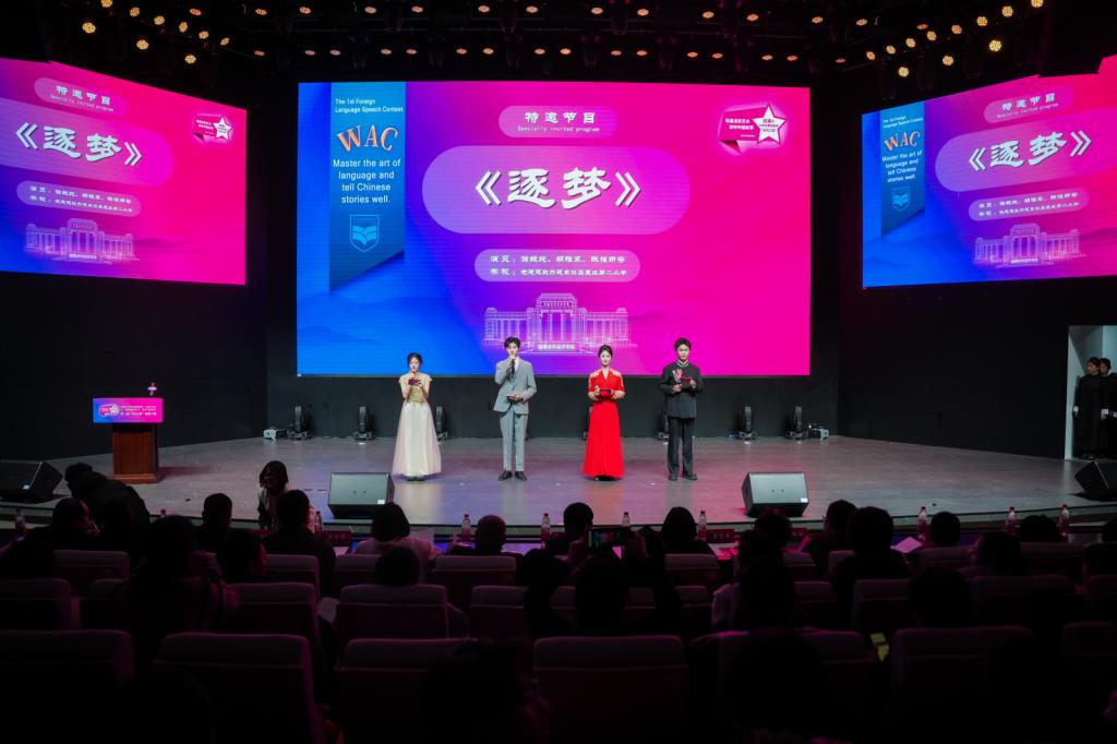 在才艺表演环节,选手们用流利的外语,通过红剧、朗诵、配音、短剧、舞蹈等形式,展现对优秀传统文化、革命文化和先进文化的理解与自信;评委问答环节,评委用外语提问,选手凭借扎实知识和应变能力,用外语从容作答,展现对比赛主题的深入思考,为比赛增添了专业深度与思想内涵。