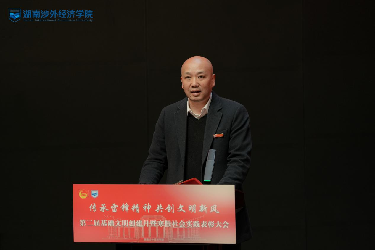 汪东明副校长为各学院志愿服务队授旗并总结讲话,他指出,近4000名学生参与“返家乡”寒假社会实践,充分展现了新时代青年的责任与担当,同时,他着重强调,基础文明创建不应仅仅是一时的热潮,而要融入校园生活的方方面面,成为常态化的文明风尚。他还提出三点殷切希望:一是希望同学们坚定理想信念,不忘求学初心;二是勇于担当责任,甘于无私奉献;三是注重锤炼品德,提升个人素质。