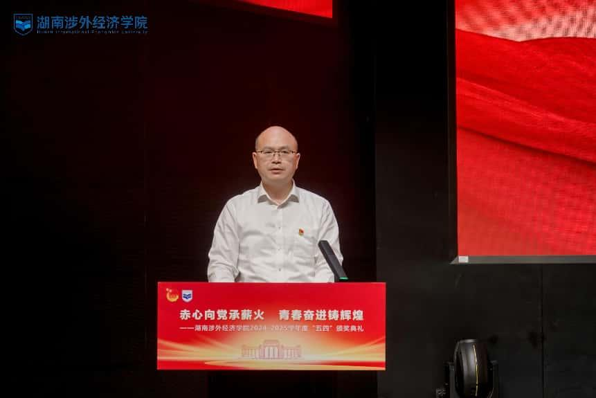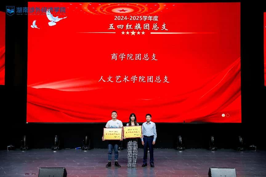 2024—2025学年度“五四”评优在《青春筑梦 潮涌潇湘》的朗诵声中,颁奖仪式正式开启。现场对共青团荣誉榜、五四红旗团总支、优秀志愿者、最美辅导员、杰出青年等多个项目的个人与集体进行表彰。集体类奖项评选出“五四红旗团总支”2个、“五四红旗团支部”34个、“五四先进团支部”70个、“五星社团”5个;个人类奖项里,“优秀共青团干部”930名、“优秀共青团员”752名、“自强之星”18名、“优秀青年志愿者”117人。