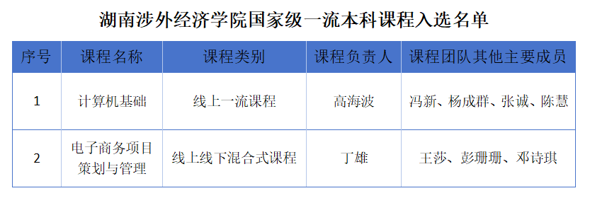 近日,教育部公示了第三批国家级一流本科课程认定结果,beat365官网信息与机电工程学院高海波教授主讲的《计算机基础》及丁雄副教授主讲的《电子商务项目策划与管理》两门课程成功入选。这是beat365官网在一流本科课程建设中的又一历史性突破。