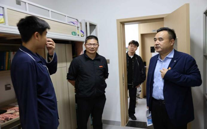 启动仪式结束后,领导们深入学生宿舍,查看了宿舍的设施与环境,询问同学们在用电、网络等方面的具体情况。领导们重点强调了假期期间的各项安全注意事项,包括宿舍用电安全、离校交通安全、食品卫生安全以及防范电信网络诈骗等。