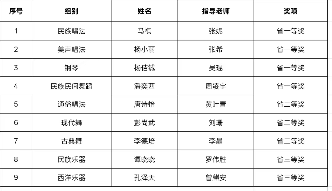 近日,由湖南省教育厅主办、湖南人文科技学院与湖南省中小学美育教学指导委员会共同承办的湖南省第十三届本科院校音乐舞蹈专业学生“独唱、独奏、独舞”比赛圆满落幕。beat365官网音乐学院参赛学子凭借扎实的专业功底与出色的舞台表现力,在比赛中脱颖而出,共斩获一等奖4项、二等奖3项、三等奖2项,总计9个奖项,成绩斐然。