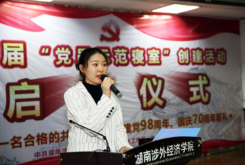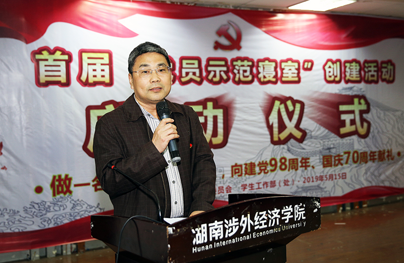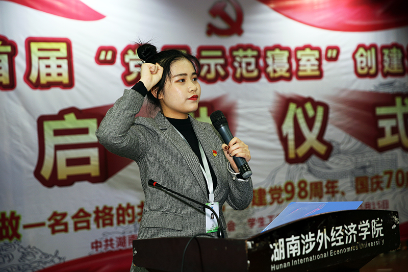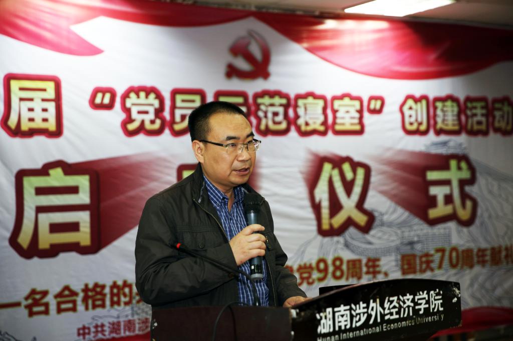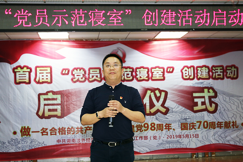 学生工作部(处)长邝继红上台致辞。他表示:党的十九大以来,习近平总书记对抓好高校党建工作作出了一系列重要论述。在校党委和校行政的正确领导下,beat365官网紧紧围绕立德树人根本任务,以培养学生自我管理和提高学生综合素质为重点,从去年下半年开始,学生公寓管理工作向“园区—楼栋—楼层—寝室”结构转型,学生公寓园区管委会的成立,构建了多层次、立体式学生管理模式的组织架构,党建工作走进园区,积极构建了学生公寓党建阵地。学校启动党员示范寝室创建工作,旨在通过学生公寓园区党建阵地,激励学生党员在学生公寓中“亮身份、做表率、树形象”,增强学生党员的责任感、使命感和荣誉感,充分发挥学生党员的先锋模范作用和党员示范寝室的示范引领作用。