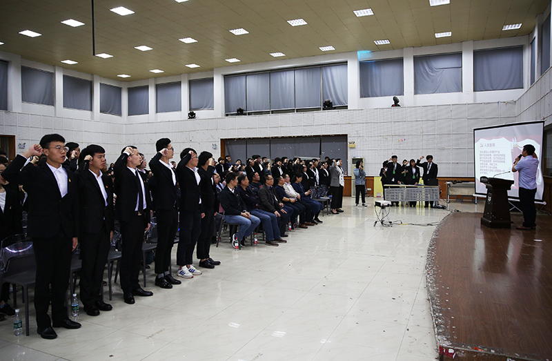公寓党总支宣传委员(第二园区管委会主任)沈飞带领全体学生党员一起重温了入党誓词,“亮明党员身份,做名合格党员,争当先锋模范”,是同学们庄严的承诺宣言。学生党员代表李智颖同学宣读了“亮身份、树形象、做表率、创党员示范寝室”申请书,表达了积极向“党员示范寝室”靠拢的愿望和决心。学生公寓管委会主任艾璞宣读学生党员承诺书,承诺用实际行动践行先锋模范作用,向学校、老师和同学们交出满意的答卷。全场学生代表齐声宣读,现场气氛庄严隆重。