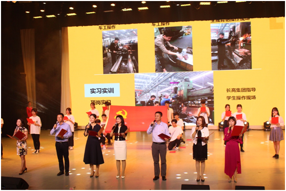 猎鹰技工学校领导班子成员和师生共同带来的诗朗诵《不忘初心》,代表全校师生许下了“不忘初心,砥砺前行” 的庄重誓言,展现了猎鹰技工学校团结一致、蓬勃向上的精神风貌。