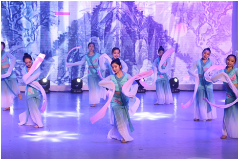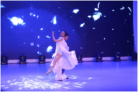 双人舞《寂静的天空》将师生们从激情的印巴舞中带到了悠扬空灵的意境中,舞蹈演员优美的身姿赢得了全场喝彩。