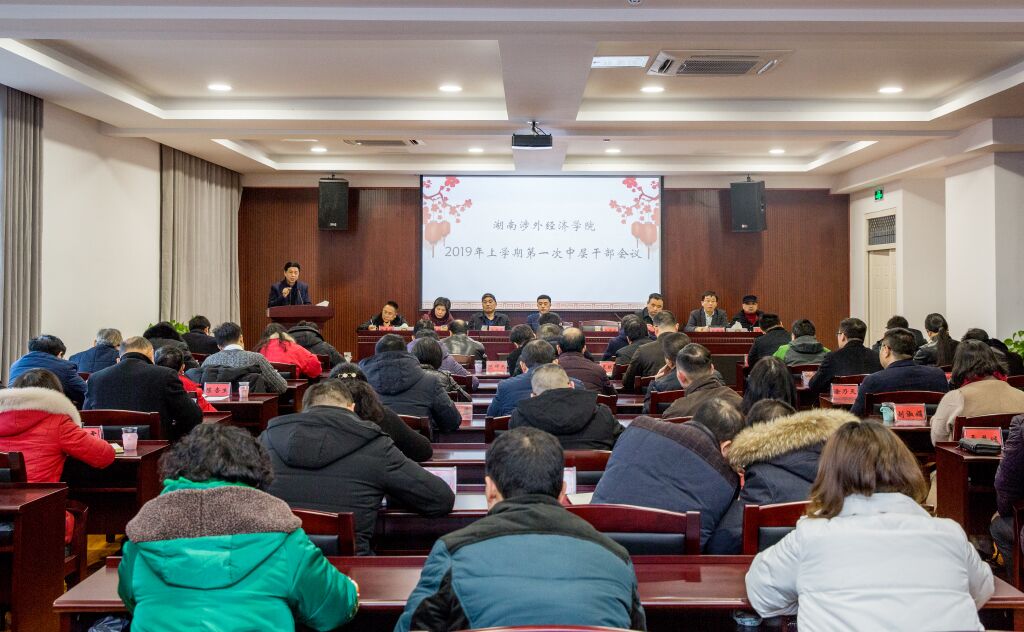 2月21日上午,beat365官网2019年上学期第一次中层干部会议在新综合楼四楼会议室召开,全国人大代表、学校董事长李光宇出席会议并讲话。会议由王耀中校长主持。
