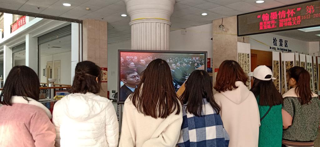 图书馆通过大屏幕播放大会盛况