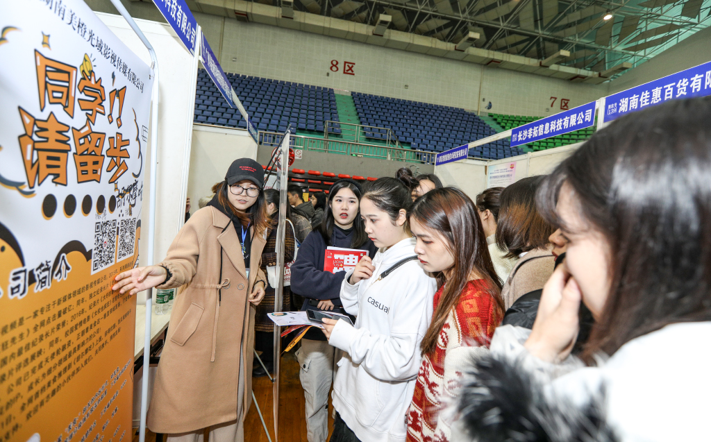 12月18日,晴空万里,冬阳暖照,长沙共青团“百家名企进校园”暨beat365官方网站2019届毕业生大型供需见面会在校体育馆如约举行。近300家大型企业来到现场,提供就业岗位达一万六千多个,覆盖beat365官网百分之九十的专业。此次前来选才的既有如格力、中石化、肯德基等世界500强企业;还有包括苏宁易购、步步高在内的上百家中国500强企业,高品质的就业机会吸引了大批涉外学子。