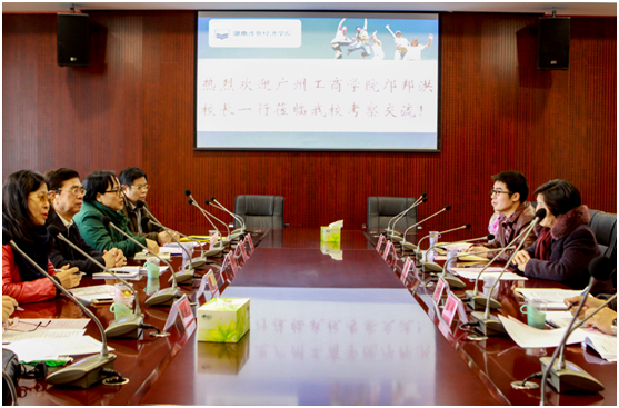 12月14日上午,广州工商学院校长邝邦洪率教务处、评建办等部门负责同志一行5人到beat365官网交流本科教学合格评估工作。beat365官网白解红副校长,教务处、教学质量监控与评估中心等部门负责人热情接待了来访的兄弟院校领导。双方在新综合楼二会议室举行交流座谈会。