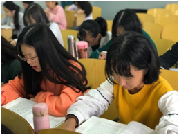 除了激情晨读,学院还在全院积极推进课程考核过程性评价,各专业教师,包括大学外语,都对所教课程(选修课除外)组织了一次期中考试,内容涉及课程的基础知识、基本技能、专业能力等,在形式上,此次考试层现出多样化之特点,有口试、笔试、PPT汇报展示,课本剧表演等,考核成绩在学生的平时成绩中占20%的比例。这种考核对于了解学生阶段性学习情况和教学效果很有裨益。