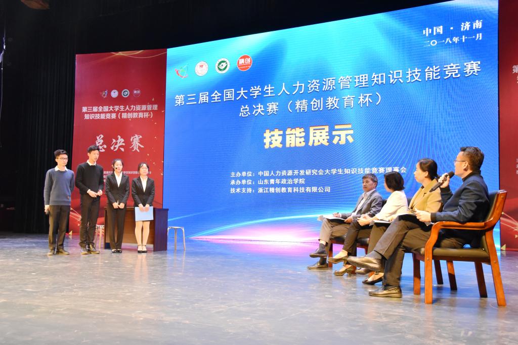 2018年11月3日至4日,由中国人力资源开发研究会主办的第三届全国大学生人力资源管理知识技能竞赛总决赛(精创教育杯)暨高峰论坛在山东青年政治学院成功举行。本次大赛共有275所来自全国各地的本科院校代表队参加,最终由在各大赛区中脱颖而出的71所本科院校进入到全国总决赛。大赛还邀请到了杨河清教授,童玉芬教授,董克用教授等人力资源研究领域“大咖”齐聚一堂,共同探讨人力资源实践教学新思路。