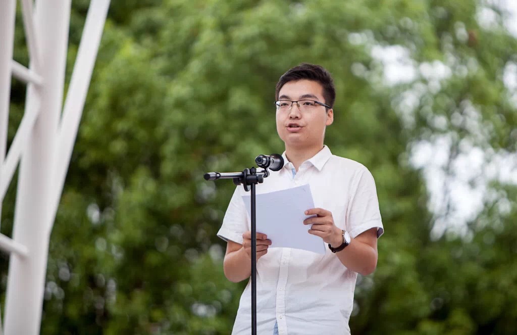 现任校学生会主席,来自管理学院的李泽程同学作为老生代表发言。他分享了自己在涉外的所见所闻和成长收获,并借用一句古语“人才有高下,知物由学”来告诫学弟学妹,进入大学更不能松懈,梦想从学习开始,事业靠本领成就。应如习近平总书记所说,要“自觉加强学习,不断增强本领。既多读有字之书,也多读无字之书,注重学习人生经验和社会知识。”他希望学弟学妹们能在大学中不浮躁、不盲目、不迷失,在这里收获知识与智慧、能力与才干,以及可以珍视一生的友谊,在涉外书写下绚烂、无悔的人生篇章。