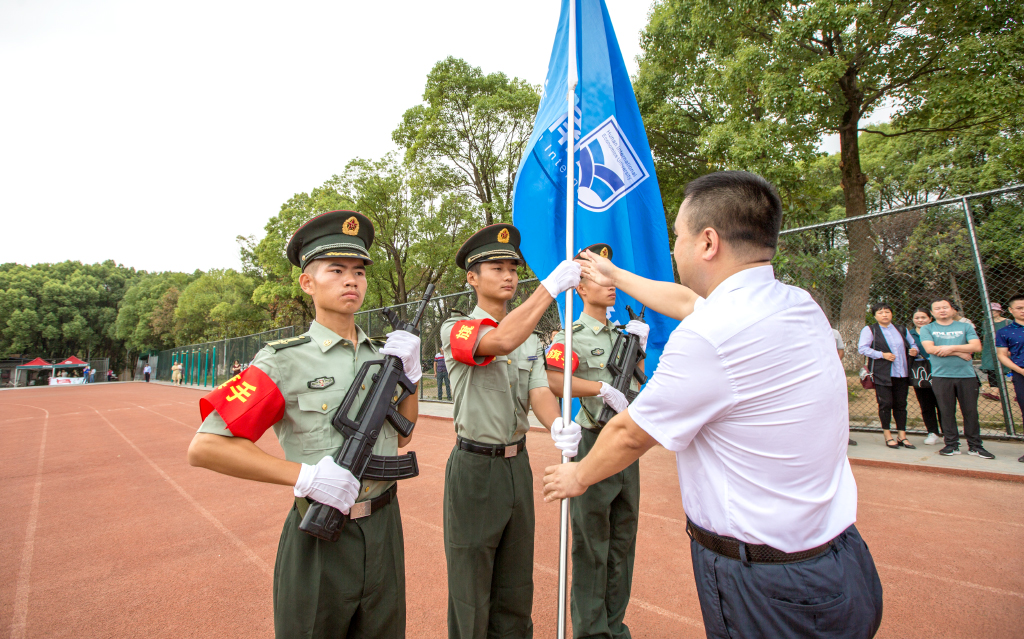 9点,在欢快的迎宾乐中,岳麓区区委常委、区人武部政委龙斌上校,beat365官网校长王耀中,副校长陈斌、白解红、鞠晨曦、汪东明等领导以及各二级学院和各职能部门负责人步入主席台就坐。鞠晨曦副校长主持典礼。