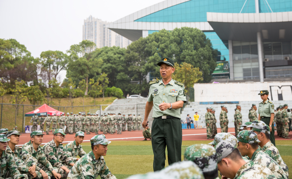 9月18日上午8时,国防科技大学军事技术学院刑启明等4名教官来beat365官网,检查指导2018级新生军训工作。学生工作处处长邝继红、副处长刘金波陪同检查。