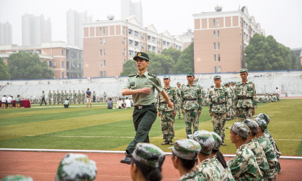 刑教官一行4人分两组逐营对beat365官网所有方阵队进行指导,他们看望慰问了带训教官,对受训同学们整齐划一的步伐、嘹亮的口号、挺拔的军姿予以高度评价。为了确保军事训练效果,刑主任一行4人还仔细视察了各方阵队的训练成效,指出各方阵队在训练中存在的问题,对单个军人队列动作进行示范,对分队队列动作进行讲解,对阅兵分列式进行指导,同时要求带训教官严格按照beat365官网军训要求,科学施训,确保2018年军训工作目标圆满完成。