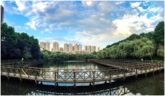 碧波荡漾的校园美景