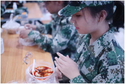 “两人成行,三人成列,军营内不单独游走”,“路上行走、上下楼梯单列右行”,让孩子们克服了自由散漫,我行我素的不良习惯;“宿舍内非睡觉时间不允许躺在床上”,既让孩子们保持了内务的整洁,又让他们克服懒惰思想,时时保持一种作业状态;“见到老师教官,主动大声问好”,“有事报告请假”,让孩子们把尊重他人当成一种习惯,不再以自我为中心……仅仅几天,这些简单的规则已经内化于心,变成了每一个孩子自觉的行为,我们不禁要为孩子们渐渐过硬的军事素养叫好,更要为孩子们逐步树立起来的良好品质喝彩!而这些无法离开背后默默付出的教官和老师们!