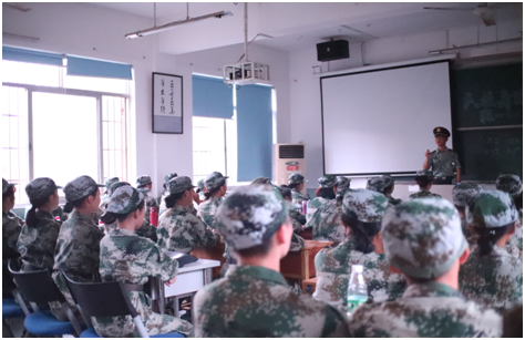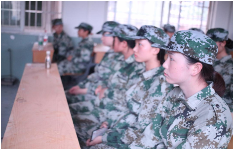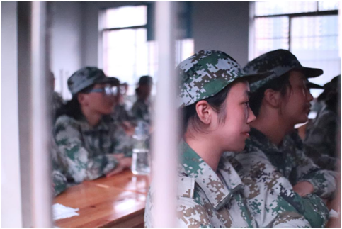 同学们认真聆听老师与教官的教导