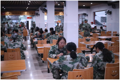 下训后同学们在食堂用餐
