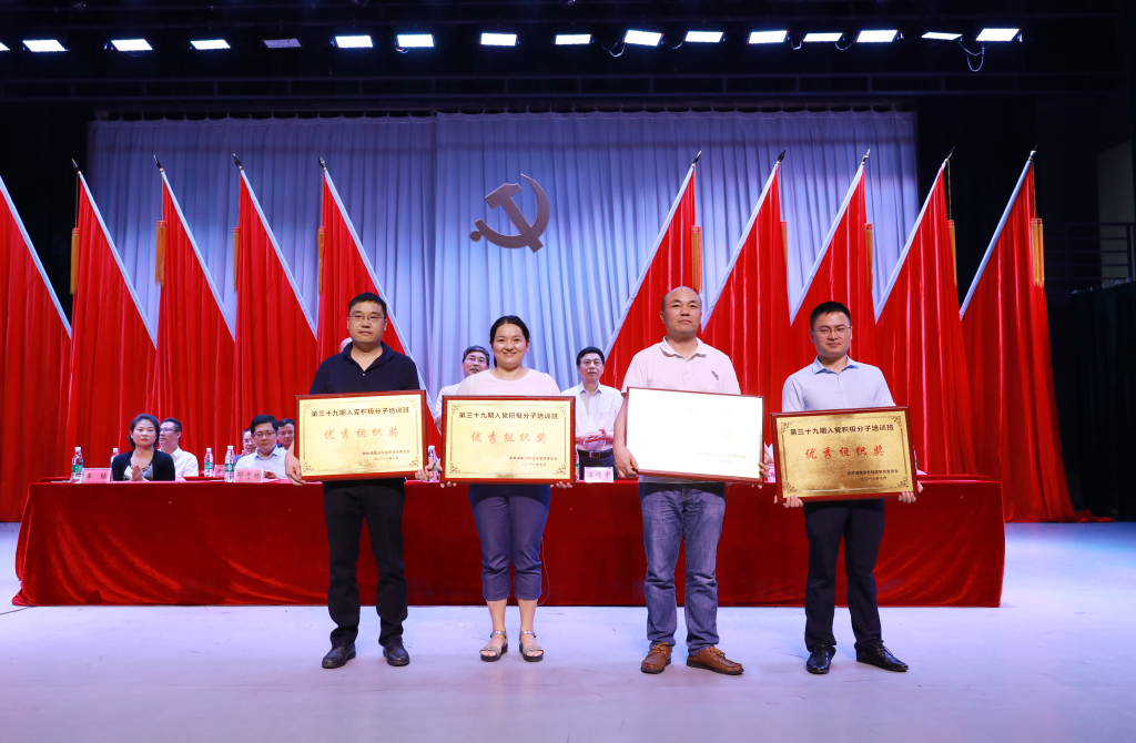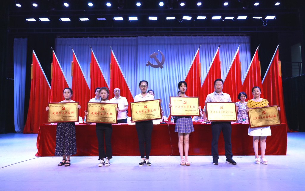 随后,校党委委员、鞠晨曦副校长宣读校党委《关于表彰2017-2018学年度先进基层党组织、优秀共产党员和优秀党务工作者的决定》。该《决定》指出,为庆祝我党成立97周年,深入学习贯彻习近平新时代中国特色社会主义思想和党的十九大精神,提升基层党组织的凝聚力和战斗力,增强广大师生党员的归属感、使命感和荣誉感,引导激励广大师生党员践行新担当、展现新作为,校党委决定对商学院等2个党总支,第七直属党支部等4个教工党支部,机械工程学院第一学生党支部等6个学生党支部(含学生宿舍活动党支部),以及陈奇等157名优秀党员和许梦龙等22名优秀党务工作者予以表彰,希望受表彰的先进集体和个人珍惜荣誉,再接再厉,取得更优异的成绩,希望全体党员师生以先进为榜样,在各自岗位上为学校的发展建设作出更大贡献。鞠晨曦还宣读了校党校《关于表彰第39期入党积极分子培训优秀组织奖、优秀教员、优秀学员的决定》。在主席台就坐的校党委委员为获奖集体颁奖。
