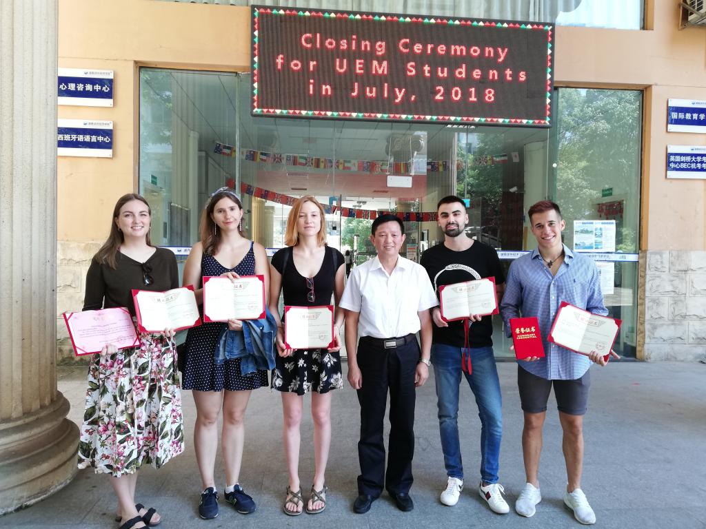6月29日上午,学校为本学期来beat365官网学习的西班牙马德里欧洲大学等校的留学生举行了结业典礼。符华兴副校长、国际合作与交流处、国际教育学院领导以及留学生任课教师等出席了典礼。典礼由国际合作与交流处陈善敏处长主持。