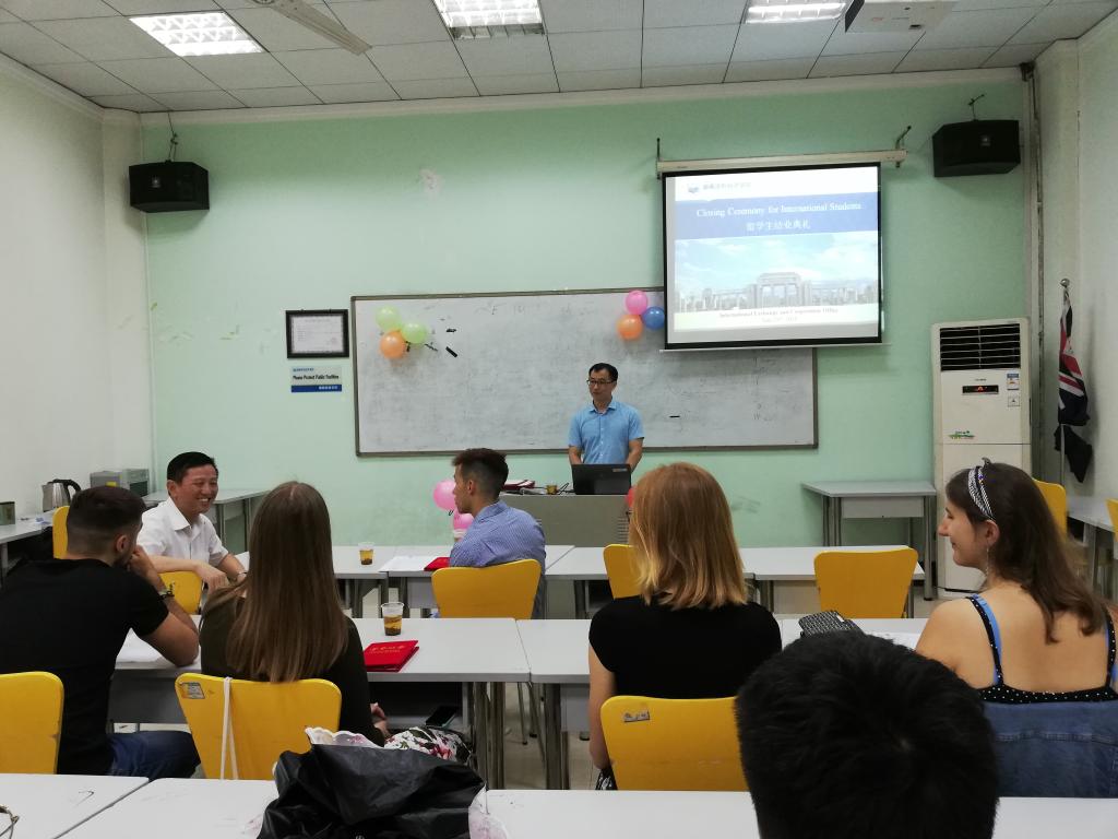 陈处长首先简要总结了本学期校际交换生的教学工作情况,对留学生们努力学习、友好合作、圆满完成学业表示了肯定与赞扬,祝贺他们顺利结业。接下来,刘胡英副教授代表任课教师发言,她表示,近半年来,beat365官网留学生们克服学习、生活和语言环境等方面的困难,热情学习,友好相处,不断进步。虽然他们在beat365官网的时间不长,但确实增进了相互了解,传播了文化与友谊,老师们殷切地希望他们回国后继续好好学习,关心和支持涉外的留学生交流。