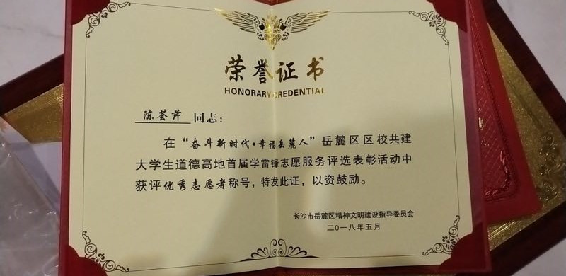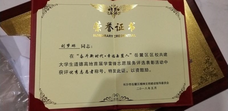 为进一步加强公民道德建设,积极培育和践行社会主义核心价值观,广泛动员辖区大学生参与区校共建大学生道德高地活动。以学雷锋志愿服务常态化和制度化为目标,贴近实际、贴近生活、贴近群众,积极开展城市管理、义务帮教、法律咨询、文艺演出、医疗卫生、敬老扶残等学雷锋志愿服务活动,涌现出一大批学雷锋志愿服务先进典型。为表彰先进,树立榜样,经各单位推荐,严格评选,长沙市岳麓区文明委决定:授予刘梦琳同志“区校共建优秀志愿者”称号,授予陈荟芹同志“区校共建优秀志愿者”称号,授予beat365官方网站SFYou助学会“优秀志愿服务组织”称号。希望受表彰的集体和个人珍惜荣誉,再接再厉,在校共建工作中更好发挥示范带动作用,为建设“知识岳麓”“创新岳麓”作出新的更大贡献!