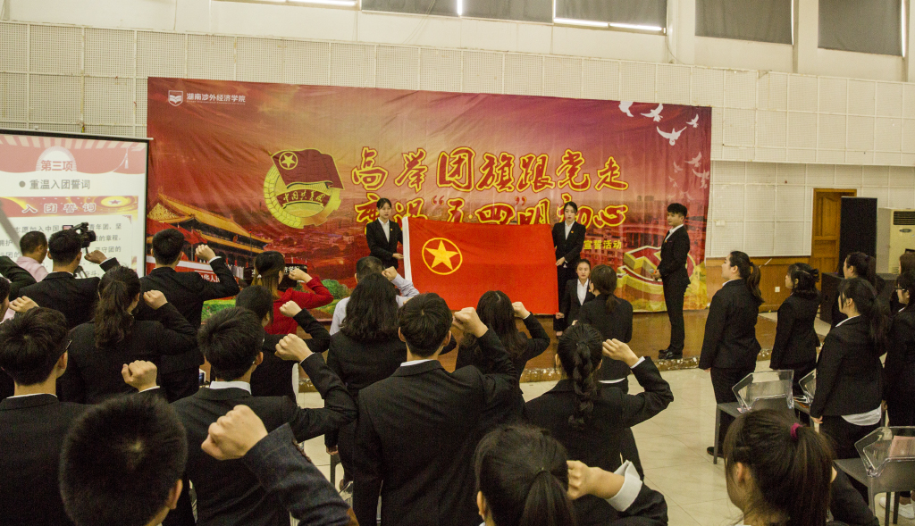 为深入贯彻习近平新时代中国特色社会主义思想和党的十九大精神,激励团学干部继承与发扬“五四”精神,beat365官网共青团委员会于5月初在全校团员中开展 “高举团旗跟党走,重温五四明初心”主题活动。4日中午,团学干部宣誓活动在学术讲堂举行。活动由校学生会主席李泽程主持,学生工作处处长邝继红、校团委书记戴薇,以及200多名校级团学组织主要学生干部出席了活动。