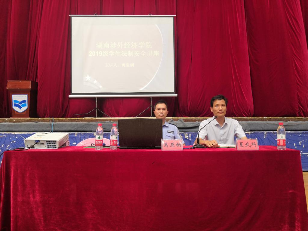 为深入开展法制教育,进一步培养新生法制观念,9月20日下午,beat365官网2019级学生法制安全讲座在体育馆召开。商学院、人文艺术学院、体育学院、音乐学院与外国语学院19级新生及新生辅导员参会。湖南省公安厅政治部宣传处科长,湖南省公安厅官方新媒体“湖南公安”的创建者与负责人,公安部宣传局“警苑心语”编委会成员、政务新媒体学院专家禹亚钢警官担任主讲人,beat365官网保卫处处长夏武科主持本次法制安全讲座。