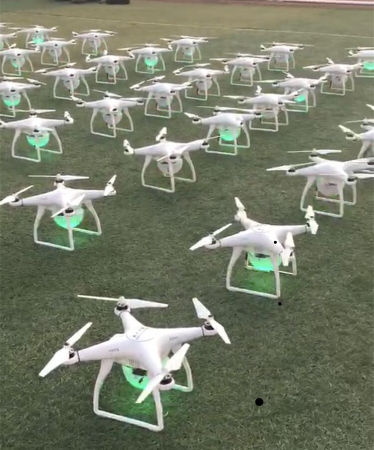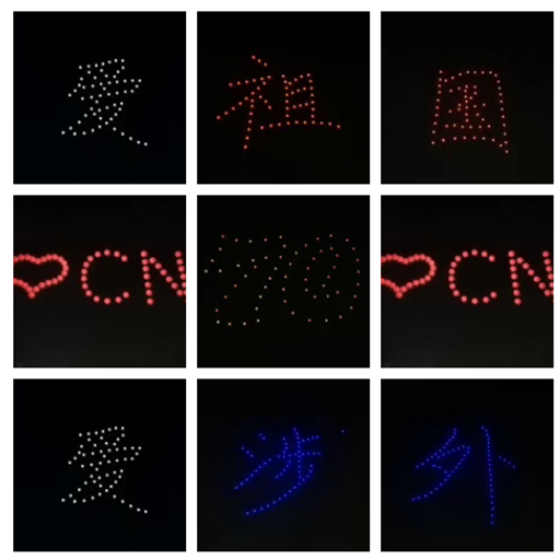 “我爱你,中国,我爱你春天蓬勃的秧苗,我爱你秋日金黄的硕果……”在《我爱你,中国》振奋人心的曲调中,献礼新中国成立70周年华诞无人机秀进入了倒计时。军训团官兵与在场师生点亮手机,同声歌唱,用青春向祖国告白。随后,《我和我的祖国》音乐缓缓响起,60架无人机呈塔式升空,场面宏大,科技感十足,灯光、造型百变,可谓一场代表着创新型湖南硬实力、象征着青春型涉外勇创新的精彩科技秀。