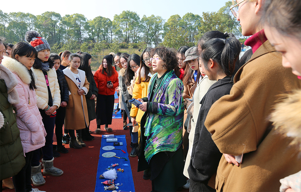 教书育人,在“教”中感悟育人责任,是朱旭云老师始终遵循的理念。2012年以来,她师从名家,先后学习了人文茶道、人文花道和香道及蓝印等中华传统文化,并不断结合自身所学进行教学改革与探索创新,潜移默化地把教学与传统文化推广、大学生思想政治教育有机结合,春风化雨,润物无声。一方面,她把人文茶道、花艺等知识与服装设计教学有机结合,从生活美学的角度出发,引导学生用布艺切入到文创产品,既有创意,又实用时尚,各种不同材质作品的集中展示,也让学生们对于各类服装原材料的质地、肌理与运用有了更实际的感悟。另一方面,她在全校开设《人文茶道》等公选课,不定期为学生做有关“中华人文茶道”“遇见最美的自己——茶”以生活美学与礼仪修养为主题的讲座,并在湖南图书馆国学堂等地连续推进茶与花、茶与器、茶与席、茶与空间、茶与香、茶与音乐,以及茶与人等相关课程,以礼仪、规范、修心、治行、感受唯美的学习方式,引导大学生和国学爱好者学习和传承中华传统文化。