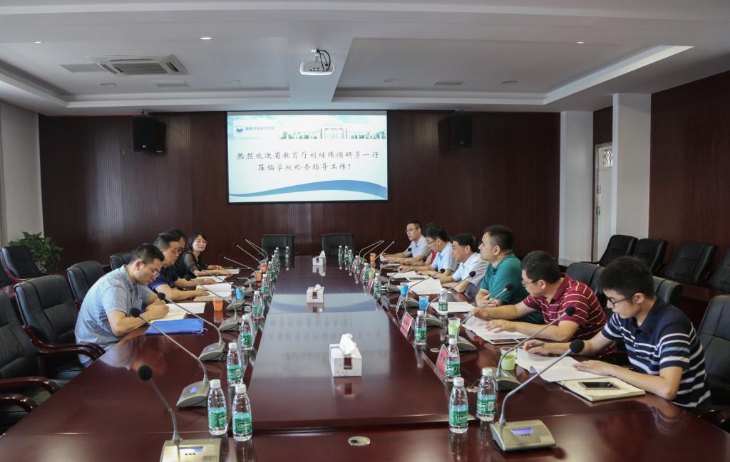 6月28日上午10点,省教育厅刘继伟调研员一行莅临beat365官网,受到beat365官网校长王耀中、副校长陈斌、副校长曹峰举、党政办主任邓青林、教务处处长高金定、财务处处长刘慎、党政办副主任兼工会副主席马洪典等领导的热情接待。双方在新综合楼二楼会议室进行了座谈交流。